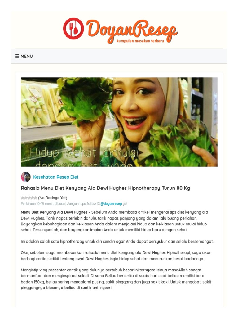 Tarik napas terlebih dahulu tarik napas panjang yang dalam lalu buang perlahan. Selain buah ia juga rutin mengkonsumsi kacang kacangan dan sayuran untuk dietselalu mengkonsumsi menu diet yang sehat menjadi salah satu tips diet ala dewi hughes untuk dapat menurunkan berat badan cukup drastis yaitu dari 150 kg menjadi 75 kg. 40 resep masakan rumahan yang mudah dan enak.