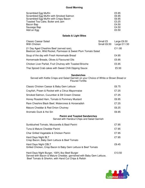 Lounge Bar Menu 220410 Pdf Hard Days Night Hotel