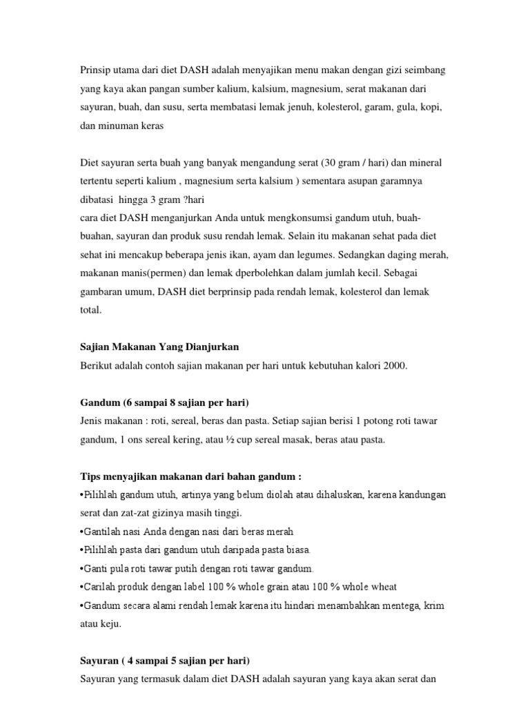 Menu diet dash indonesia pdf. Dash dietary approaches to stop hypertension panduan diet untuk mengendalikan hipertensi. Diet dash berfokus pada lemak dan kolesterol yang rendah lemak jenuh memiliki sejumlah protein dan kaya akan vitamin mineral dan serat. Pemberian obat obatan anti hipertensi perlu terapi dietetik dan merubah gaya hidup.