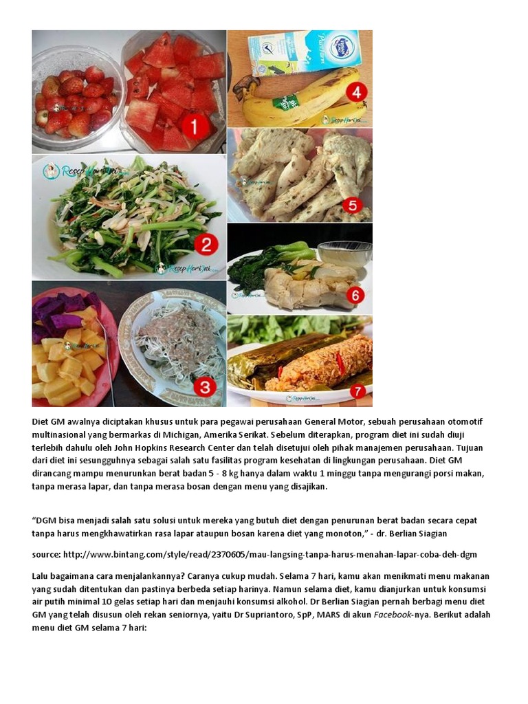 527 resep masakan rumahan yang mudah dan enak. Diet gm ini diciptakan oleh perusahaan industry manufactur automeobile. Definisi diet gm adalah salah satu metode diet yang banyak dipilih untuk menurunkan berat badan dalam waktu singkat dengan cara membatasi porsi dan menu makanan selama 1 minggu.