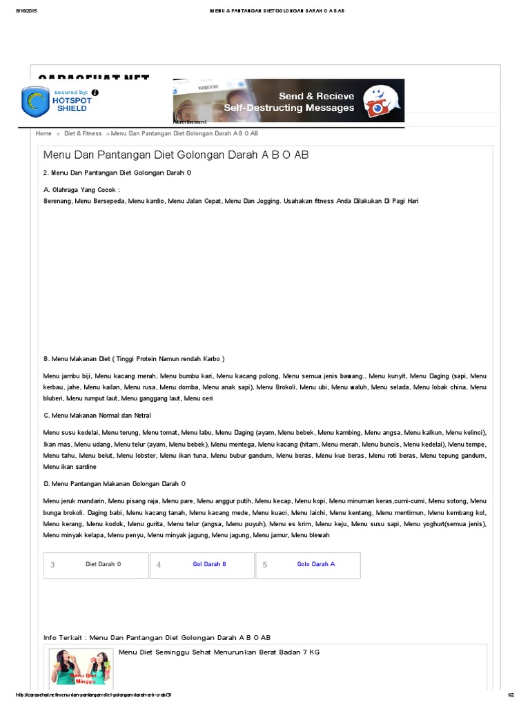 Menu Diet Golongan Darah O A B Ab Lengkap