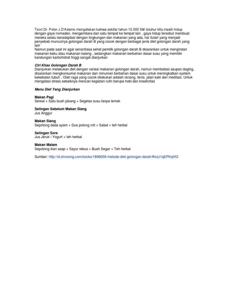 Itulah menu diet golongan darah b minuman yang direkomendasikan diperbolehkan dan harus dihindari. Peter jdadamo yang ditulis dalam buku berjudul eat right for your typedari sinilah mulai muncul beberapa pendapat yang berhubungan dengan cara diet menurut golongan darah o a b dan ab yang dilakukan. Untuk mereka yang memiliki golongan darah b ada pula makanan yang sebaiknya dihindari saat dalam program penurunan berat badan.