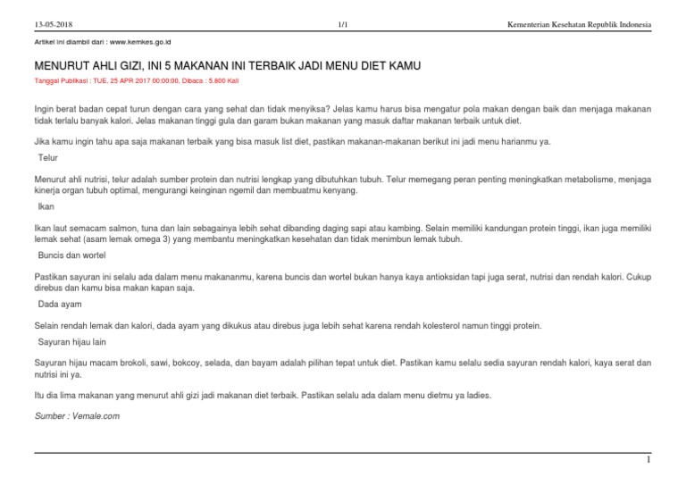 Menu Diet Sehat Cepat Menurunkan Berat Badan Resep Hari Ini