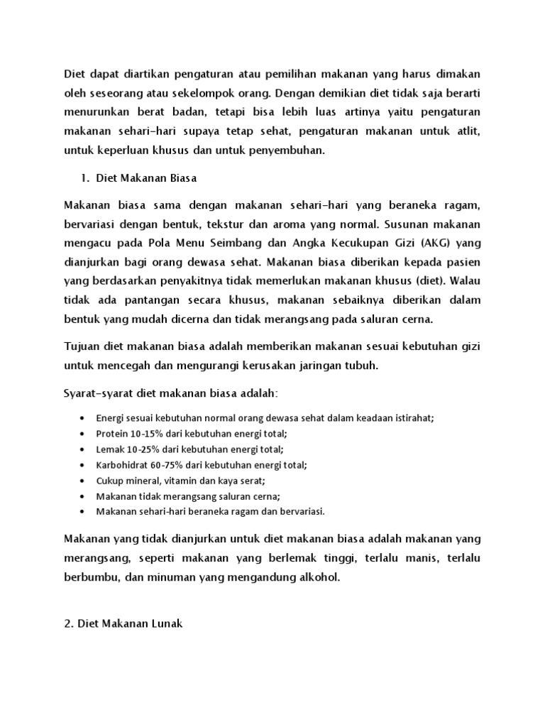 Diet Rendah Sisa Dan Diet Tinggi Serat