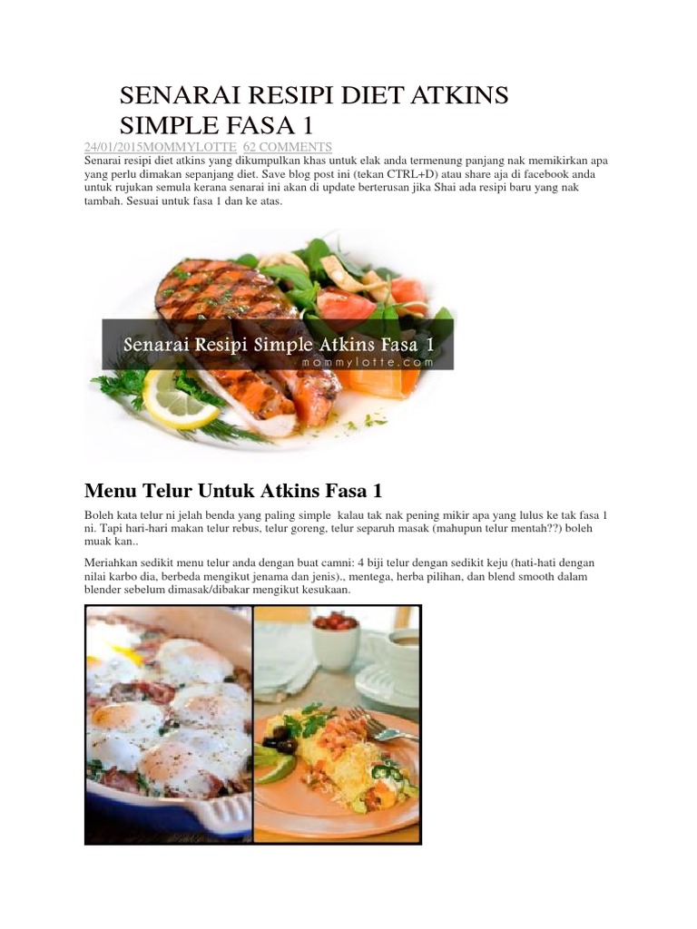 Diet atkins terdiri daripada 4 fasa. Senarai resepi diet atkins fasa 1 atau fasa induction sila klik link kat bawah ni untuk pergi ke pos mengenai menu tersebut k 1. Turunkan berat badan dengan mengikuti menu diet ini mulai dari sarapan makan siang dan makan malam.